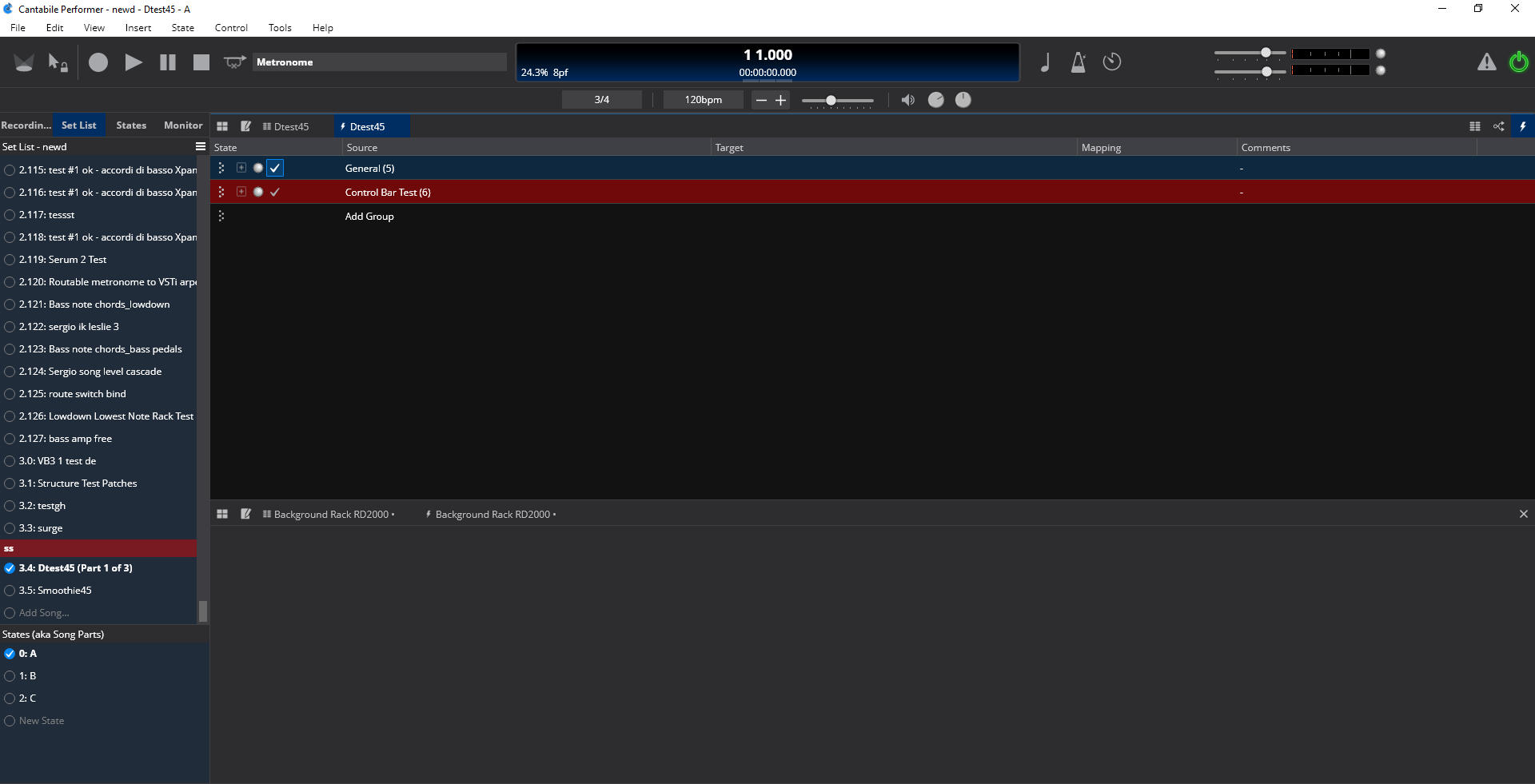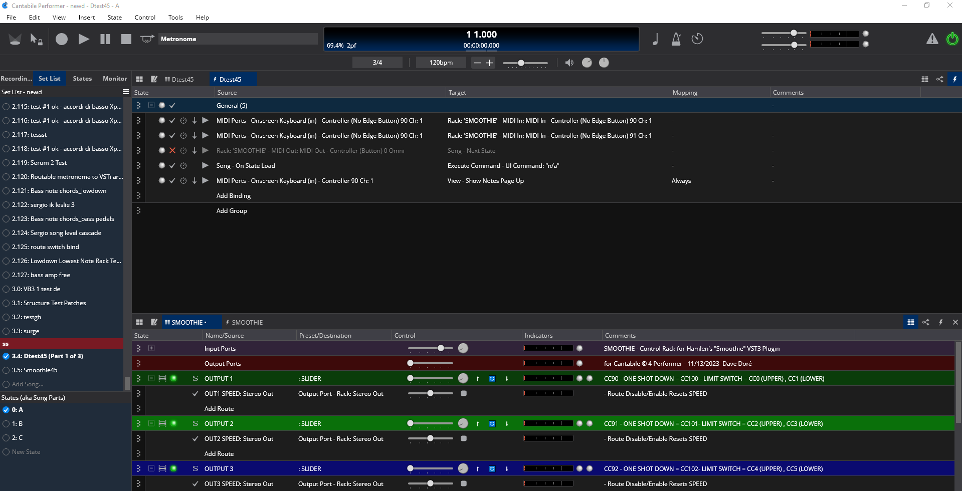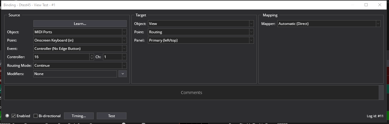 In my test song I’ve been using I first set up a new controller bar with the common 6 CC buttons momentary buttons. Then I set up 6 bindings to exercise the view functions for the new tab systems.