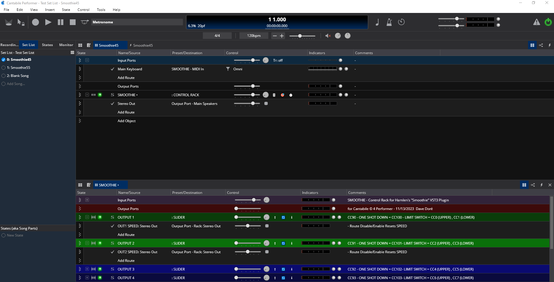 To correct this I switch to a song without the Smoothie rack loaded and then re-open the song again for the tabs to re-appear. Also I can restore them with tab set (if saved). So the file isn’t corrupted but the handling of the linked rack song to song is having troubles.