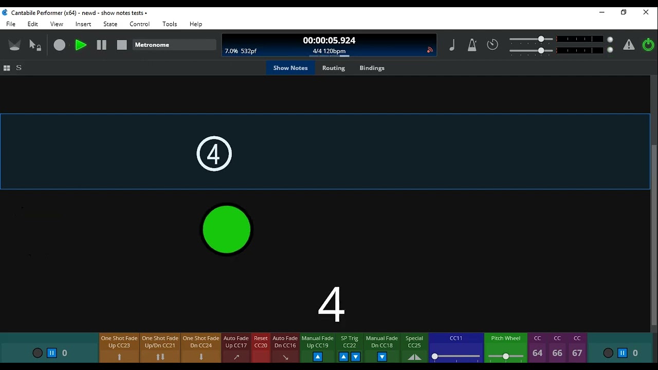 It starts to miss redraws on the Cantabile Web UI between 240 and 250 bpm. My drummer likes to take a glance at my laptop to get a visual tempo guide so I was looking at a way to make a big display type for show notes. Show Notes Native runs up to 300 BPM
