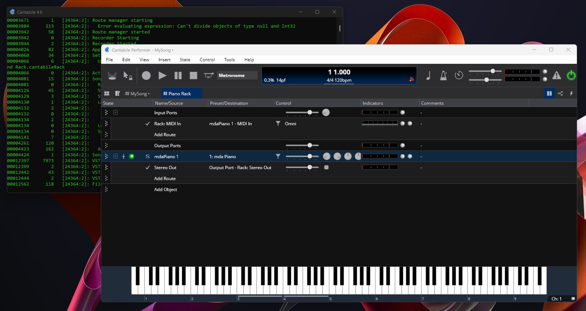 When I play notes on either keyboard the green MIDI activity indicators flash, so MIDI is clearly reaching Cantabile.
