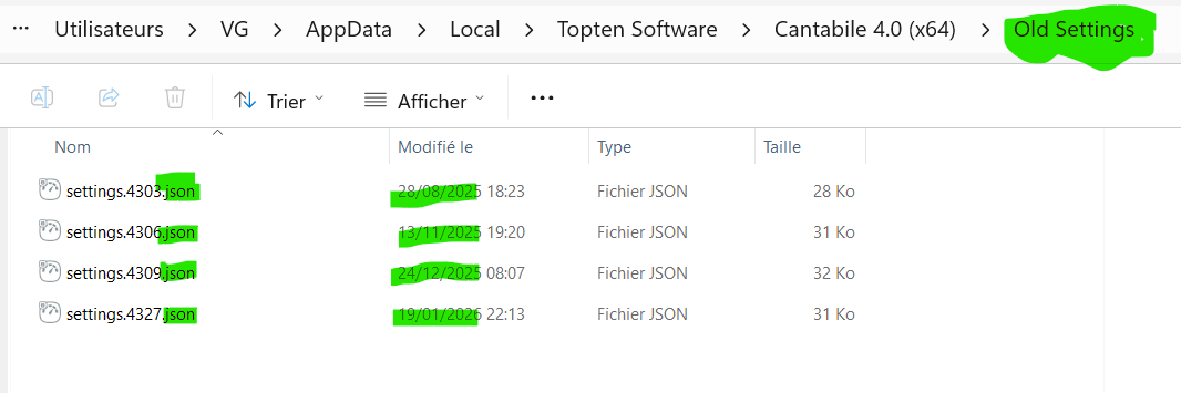 Thank you for your help. I tried to find a ‘.txt’ file in the hope of finding the correct name of my USB device, which I wrote down in the old status, but I couldn’t find it among these files. I went to “Tools → Open Settings Folder” and saw these files and folders. In the old settings, I found the files you mentioned. What is the procedure to retrieve the old settings? Next time, can I just copy and paste and replace the new ‘settings.json’ with the old ‘setting.4309.json’, for example? Thank you again for this tip!