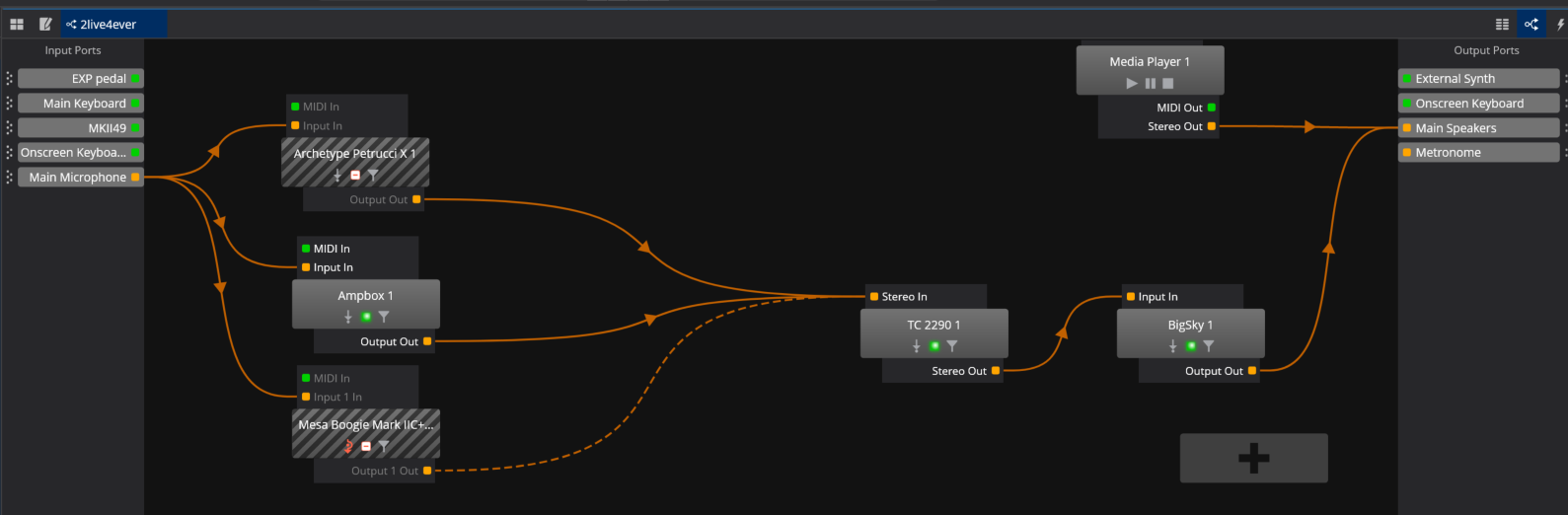 Your routing looks like it should work if you put the pedal in front of the amps as suggested. BTW which Modeler is the Mesa Boogie? One of my favorite amps. I’ve also been wanting to demo the new Petrucci X version. Recently updated Cory Wong, Plini and Gojira to the X versions… not a big difference but some nice improvements nonetheless.